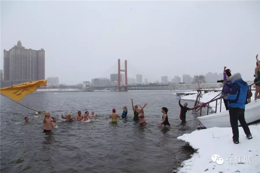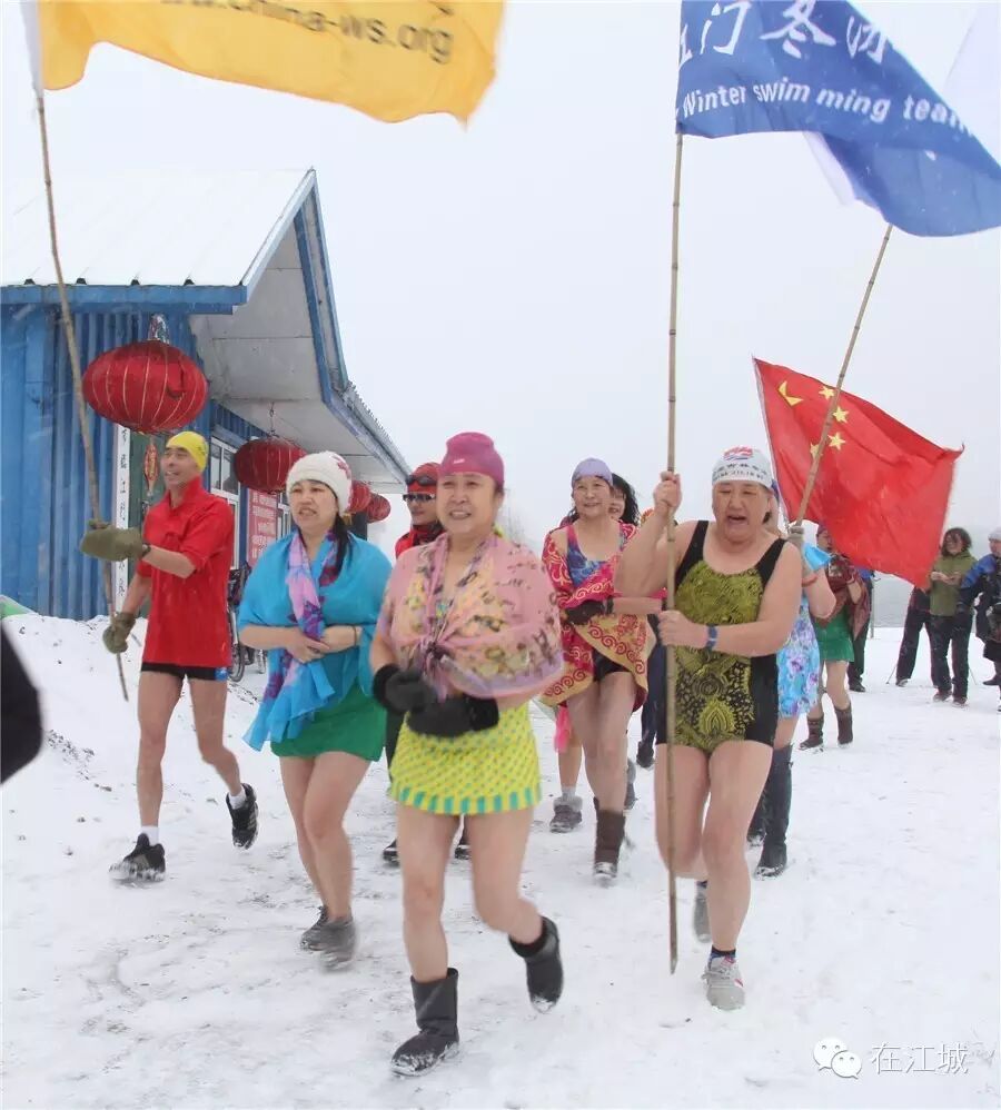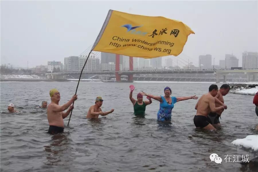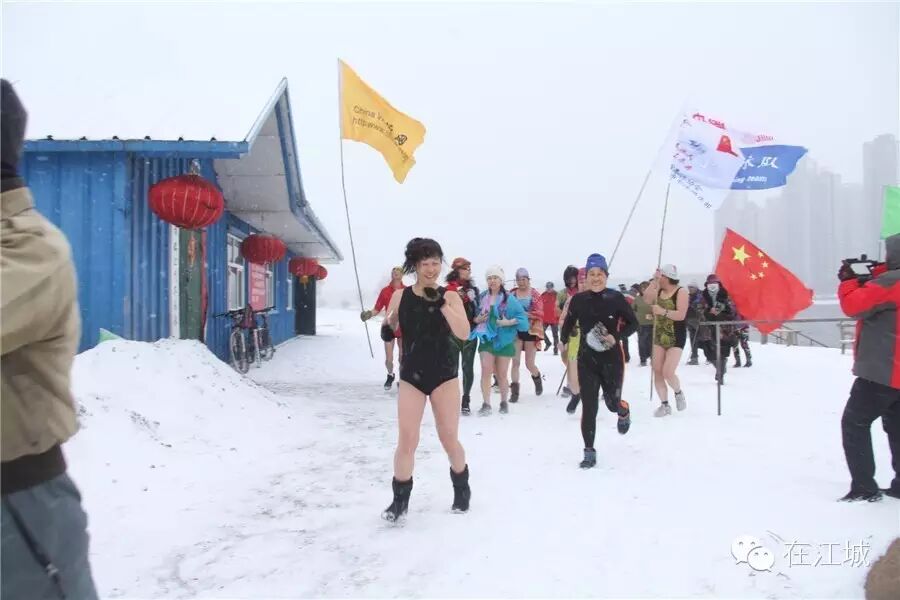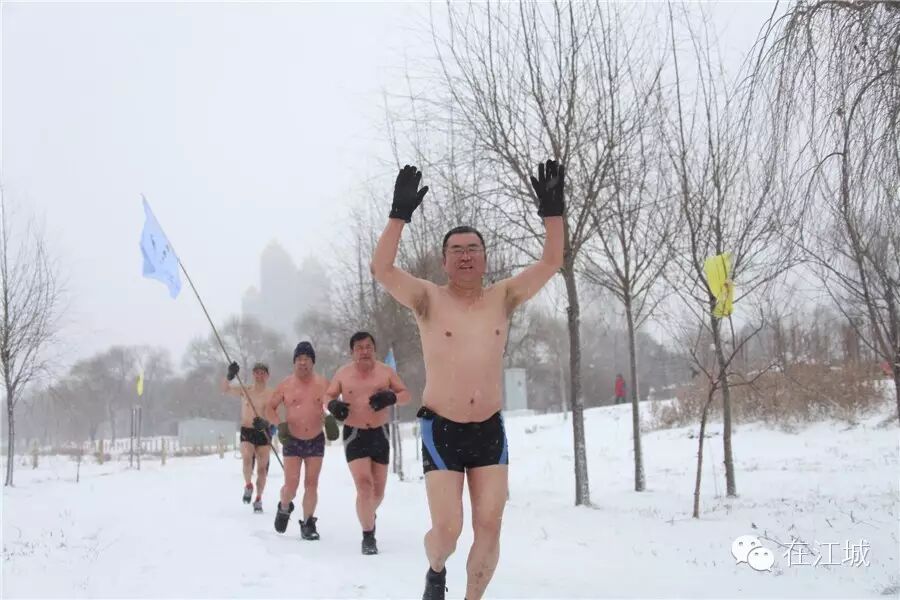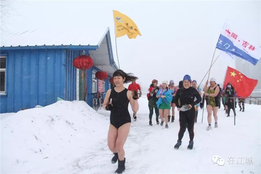 吉林市庆三八泳装跑。三月八日凌晨冬泳爱好者,勇士们陆续来到临江冬泳场。冒着大雪过后,顶着西北风,冒着小雪零下11°的气温,泳装跑了3.8公里。跑完集中跳入水温1°的松花江冬泳。高呼“吉林冬泳人,我要进冬奥”!
