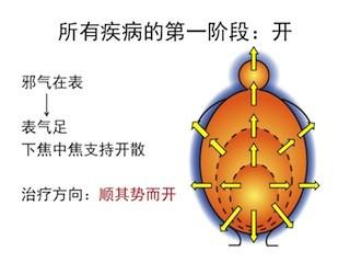 我们每个人的能量就是下焦、中焦、上焦合在一起。那么我们白天的时候我们能量往外走,这叫开。当我手脚冰冷的时候,就是我的能量不能到达身体的末梢。那如果我的鼻子一直不好,其实是能量到不了这里,这在中医来看是非常简单的。