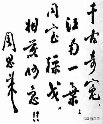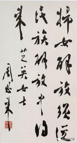 事实是,周恩来那沉着凝重、雄俊伟茂的行书,与毛泽东潇洒险峻、奇逸开张的草书,堪称新中国第一代领导人书法艺术中的两枝奇葩!