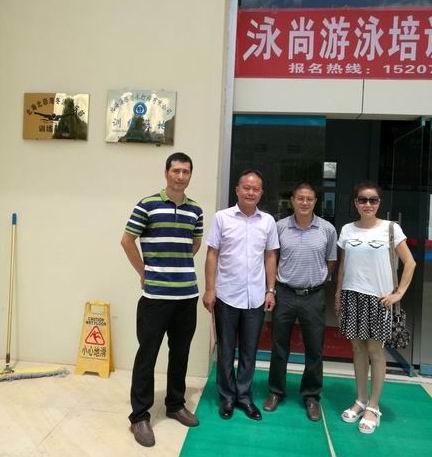 6月1日上午,市体育局梁剑波局长(右二)来到位于市工业园游泳馆的北海北部湾冬泳俱乐部进行调研工作。
