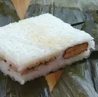 6.把粽叶细细地铺在糯米上,盖盖子,蒸15分钟,拿出来放凉就好了;