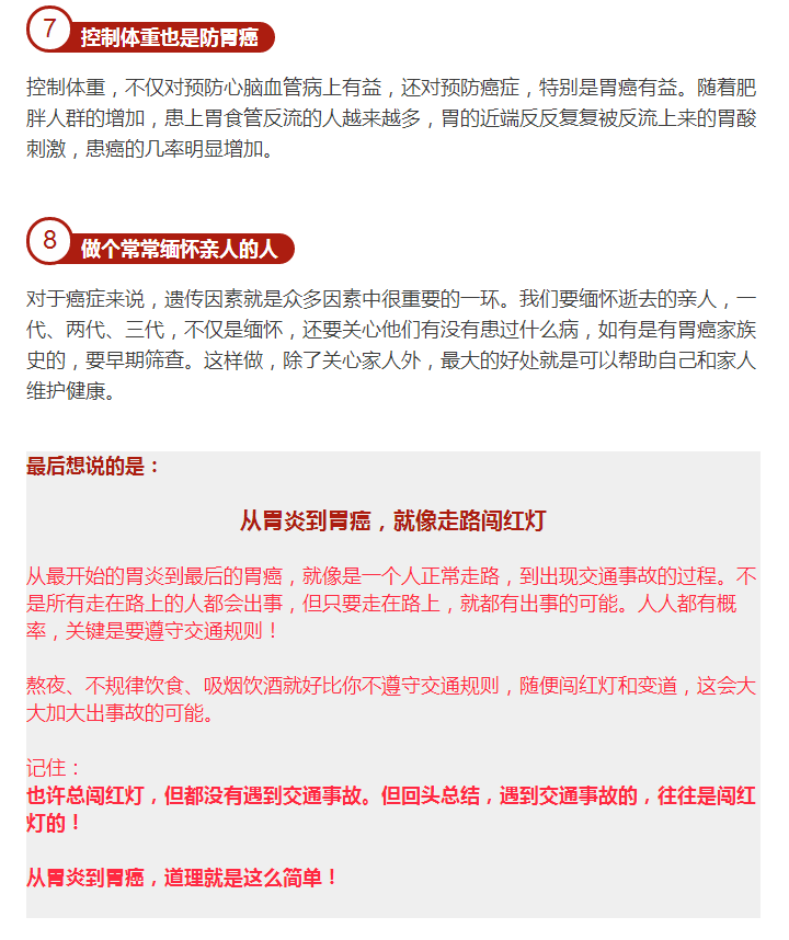 记住:也许总闯红灯,但都没有遇到交通事故。但回头总结,遇到交通事故的,往往是闯红灯的!从胃炎到胃癌, ...