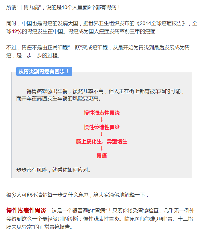 标题: 防病知识:从胃炎到胃癌仅有四步