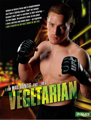 美国综合武术斗士马克·丹奇格(Mac Danzig)自从2004年便吃纯素。“当我吃纯素食后,155磅级别的比赛对我来说容易多了。我一点肌肉也没少。我比以前纤瘦,也比以往更有活力。”