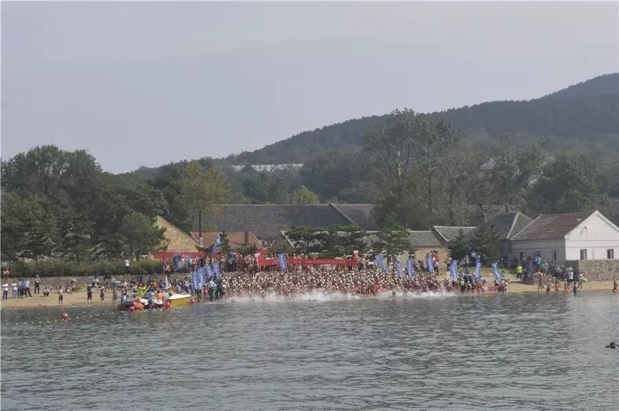 各地泳友汇集威海体验横渡刘公岛的乐趣。赞!