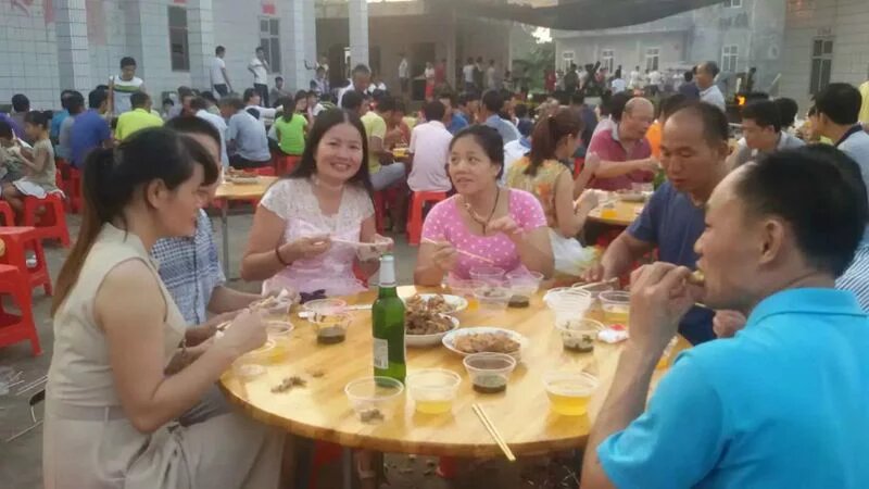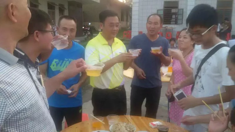 泳友们先在温罗水库畅游,然后来到温罗村坡和地。这里张灯结彩,彩旗飘扬,人头攒动,大家沉浸在欢乐的喜庆气氛中,博白泳友将在这里与村民一起欢庆中秋佳节。20多位泳友陆续就位后,饭菜开始上桌了,菜品真是丰富,有鸡、鸭、扣肉、羊肉煲、八爪鱼等等,泳友边吃边聊,心中充满了满满的幸福。秦一军会长拿着酒瓶,挨个儿敬泳友,泳友惊叹他的豪爽,纷纷举杯一饮而尽,现场的欢乐气氛感染了每一个人。晚饭后,这里还有群众文艺汇演、放烟花、赏月等多项活动同步举行。