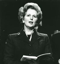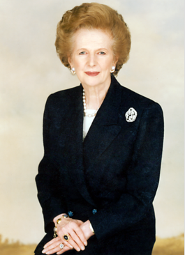 玛格丽特·希尔达·撒切尔,英国右翼政治家,第49任英国首相,1979年-1990年在任,她是英国第一位女首相,也是自19世纪初利物浦伯爵以来连任时间最长的英国首相。她的政治哲学与政策主张被通称为“撒切尔主义”,在任首相期间,对英国的经济、社会与文化面貌作出了既深且广的改变。在担任首相前后高姿态地反对共产主义,而被前苏联媒体戏称为“铁娘子”,这个绰号甚至已成为了她的主要标志。