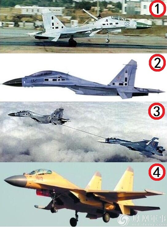 早在1987年6月6日,苏联双座型T10PU-2(①②③)原型机进行了13440KM的远程飞行,为苏27PU取代米格31验证技术,而T10PU-2正是苏30的鼻祖。在某种程度上,对今天的中国空军而言,歼16(④)就是昔日的苏27PU。(凤凰军事)
