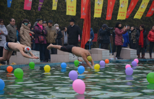 元旦是全国冬泳日。1月1日下午,我市百余名冬泳爱好者齐聚市区渭河公园,参加冬泳联谊赛。寒冷的冬日里,冬泳爱好者赤膊上阵、搏击浪花迎新年。