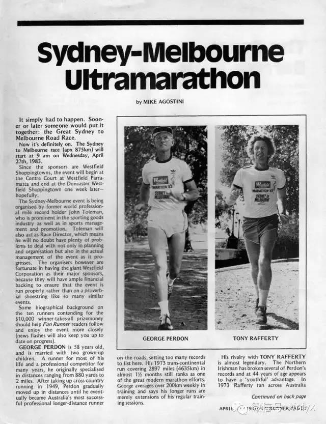 在1983年到1991年之间,澳大利亚每年都会举办一场马拉松比赛。不过,这是一场特殊的比赛 ----- 全程总共875公里,参赛者们要从悉尼一路跑到墨尔本!