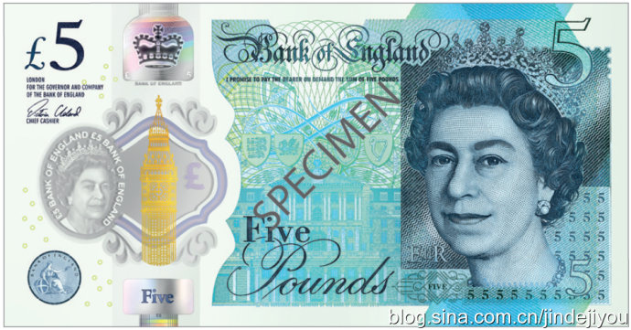 英国去年9月已发行了5英镑塑料钞票,今年5月传统5英镑纸币退出流通。新版英国5磅、10磅面值纸币以及即将发行的20英镑纸币都是新款塑料钞,其中20磅面值的塑料钞计划于2020年正式推出。