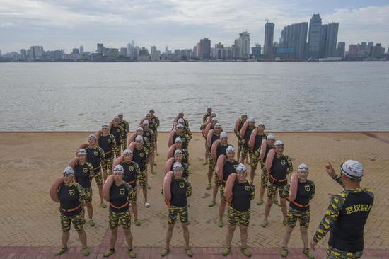长江日报7月13日讯(记者刘智宇 实习生陶小琪)13日16时许,武昌大堤口江边,40多名身着迷彩泳衣、泳裤的男女堤岸上排成整齐队列。骄阳下,“武汉民兵,逢战必胜”的口号响彻天空,这是今年渡江节的武汉民兵方队在训练。长江日报记者获悉,这是近40年来,武汉民兵首次现身武汉渡江节,此次现身,更是唤起了武汉人对于武装泅渡的泛黄记忆。