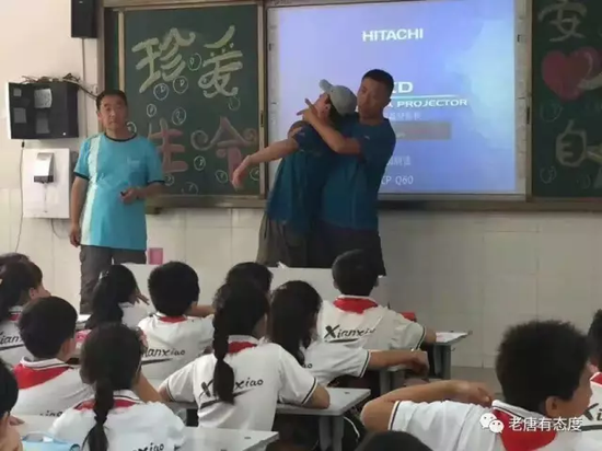 暑期前两周,牛振西到黄河沿岸及南水北调干渠沿岸的学校做了50多场讲座。除一些预防措施外,老牛还在讲座的ppt中加入了一些落水者家属悲痛场面。