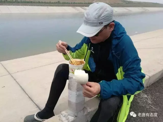 执行任务后,救援人员在河边就餐。唐山水 摄