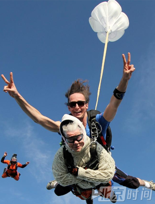 最年长的女姓跳伞老人。