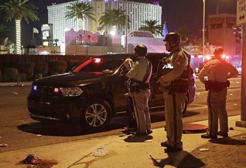 10月2日,在美国西部城市拉斯维加斯,警察在枪击事件现场警戒。