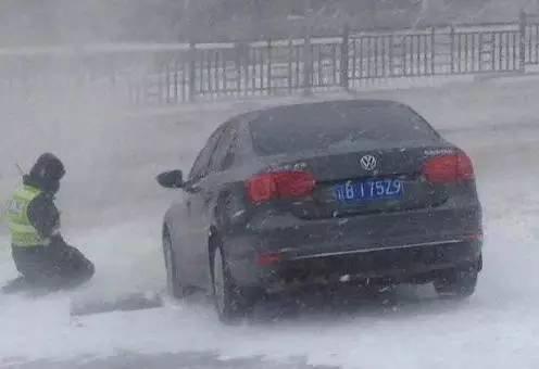 在大连,有一种文明叫做冰雪中交警推车70台,实在太累跪地休息。