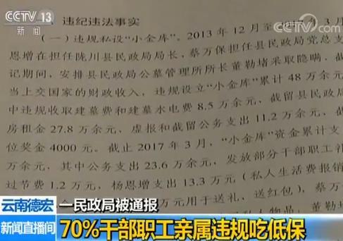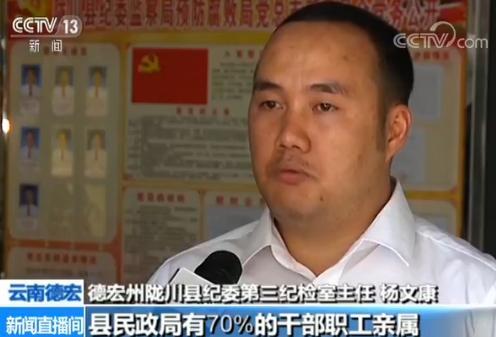 德宏州陇川县纪委第三纪检室主任杨文康:我们刚开始调查时,只是以为其中一小部分亲属违规享受低保,在调查过程中才发现,县民政局有70%的干部职工亲属违规享受低保。