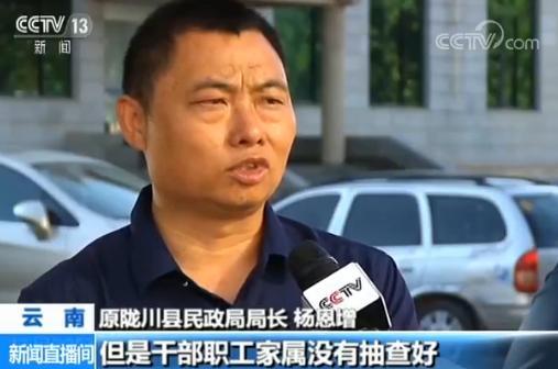原陇川县民政局局长杨恩增:没有认真执行好国家的政策,跟我们的认识有一定的关系,是我们执行政策工作中不到位造成的,认为反正乡镇已经申请审查了,民政作为最后一道关口,我们也是按照30%的去抽查,但是灯下黑,对老百姓那边去抽查了,干部职工家属没有抽查。