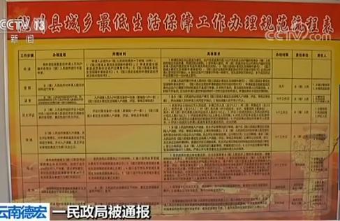 昨天(21日),记者在陇川县民政局看到,大厅悬挂了“陇川县城乡最低生活保障工作办理规范流程表”,对低保的办理流程、具体要求等方面进行了公示。工作人员介绍说,流程表是纪委对民政局案件展开调查后不久悬挂的。