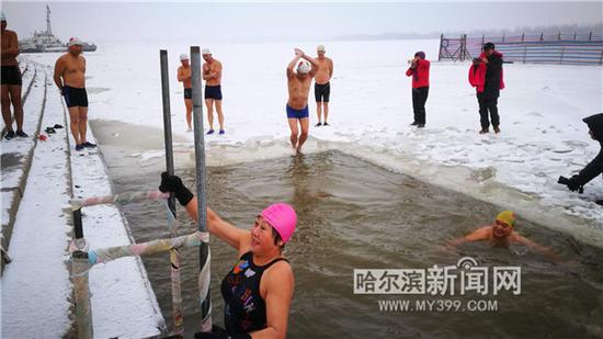 B 厦门辣妈组团来哈 就为冬泳“扎猛子”的快感