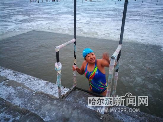 在王丽梅、马彩云、冯学慧几个女队员的陪伴下,郑青峰一个猛子扎进冰河,迅速钻出水面后,赶紧往岸边游,一秒,两秒,三秒,她快速出水。上岸后的她不知是激动还是冷,声音有些颤抖地说:“太爽了,太爽了!”郑青峰说,这是她第三次来哈尔滨,第二次下冬泳池,这样的体验,让她终生难忘!