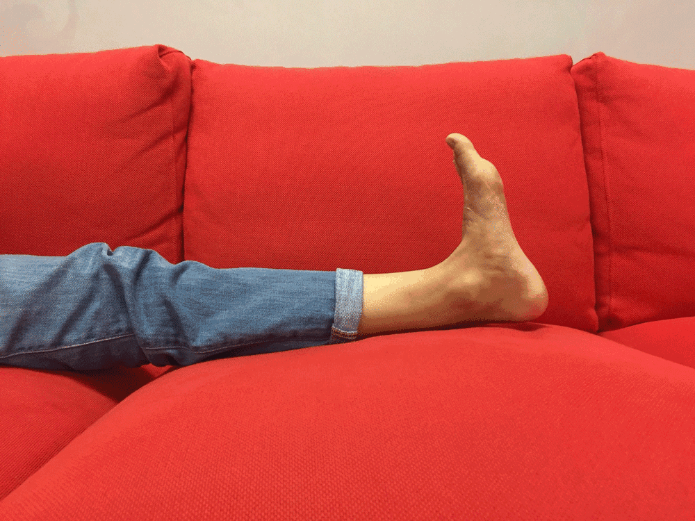 具体方法:双膝自然伸展,用尽全力勾脚10秒钟后再用尽全力绷脚,反复进行,在不引起疼痛的前提下不限次数,越多越好。