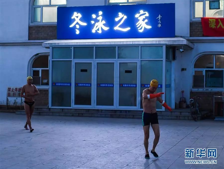 近日来,长春市气温低至零下15摄氏度,冬泳爱好者们通过参加冬泳来强身健体,磨练意志。