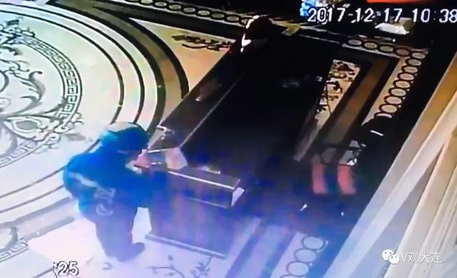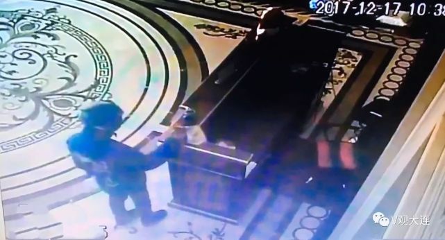 等该送餐员下楼后,发现大堂里还没有人,于是迅速将手机揣进兜里离开。