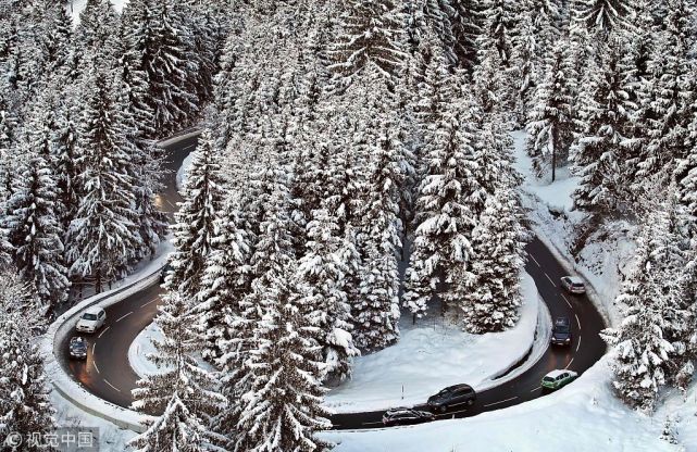 ]当地时间2017年12月29日,德国Oberjoch,当地降下大雪,道路被积雪覆盖。
