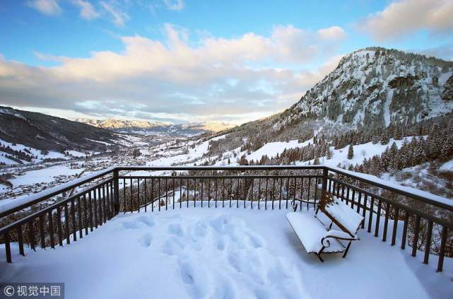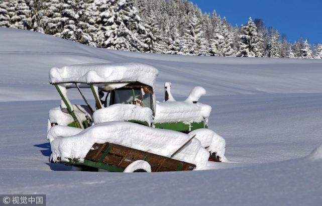 当地时间2017年12月29日,德国Oberjoch,当地降下大雪,道路被积雪覆盖。