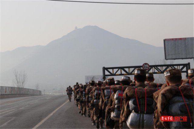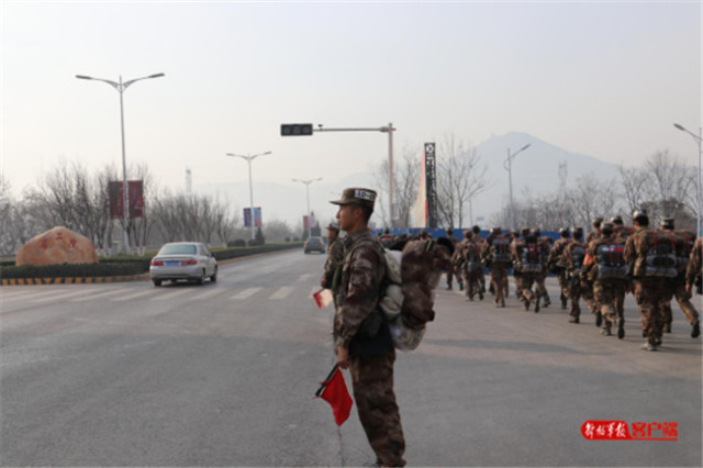 这是一次挑战:19个小时的昼夜行军,背负装具重量接近30斤,城镇、乡村、山路、公路兼而有之,既是对学员们体能体魄的考验,也是给他们的战斗精神和吃苦意识出了道难题。