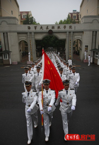 “曾经书生气的我不见了踪影,身穿海洋迷彩的我,多了几分男子汉的刚毅!感谢在最美的时候遇见你——我的军校”