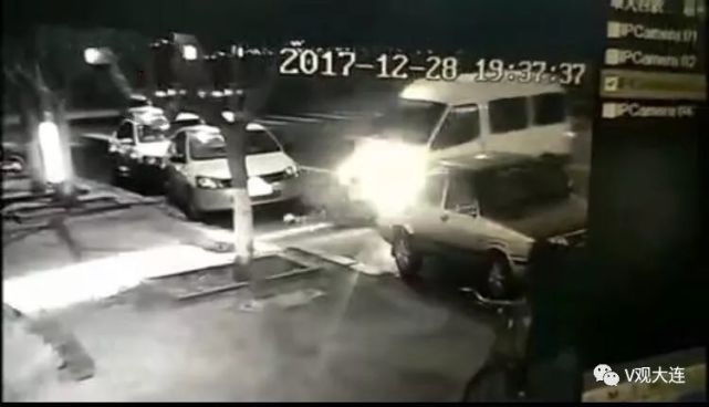 被撞司机调出监控视频后发现,肇事车当时从旅顺市区方向开来,在路口处突然甩尾“漂移”,“全顺”的车头直接撞上了路边的出租车。