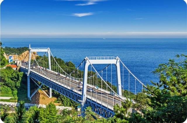 大连南部滨海大道跨海大桥,即大连星海湾大桥,为中国首座海上地锚式悬索跨海大桥。全桥采用了“单元式多向变位伸缩装置。”全长6.8公里,为双层桥。