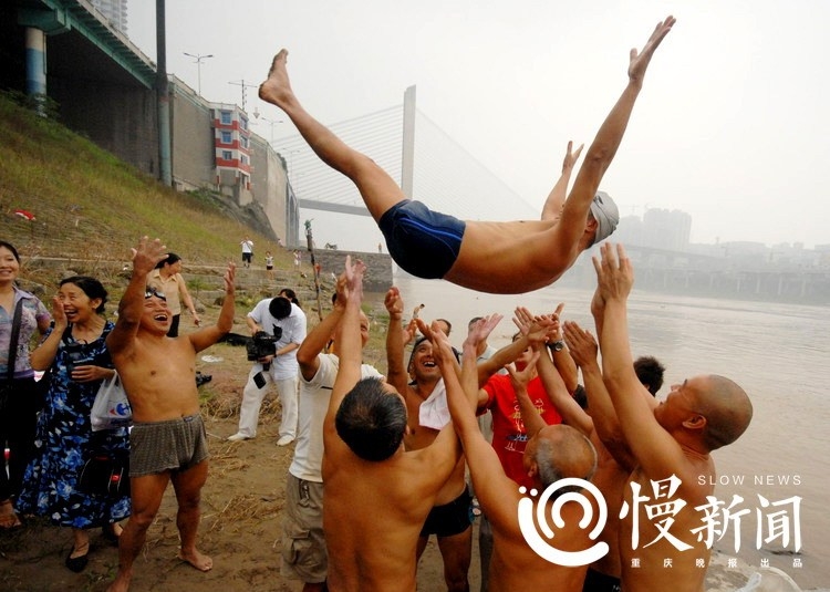2007年7月3日,金沙冬泳队14名队员上午10时从北碚正码头下水,经过7小时左右的游程,下午5时10分抵达石门大桥下的基地。这是王荣创记录的一次远征。