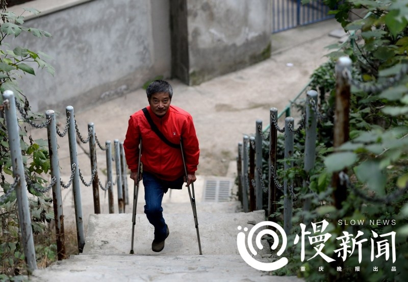 去中渡口码头的路上,这63步阶梯,对王荣来说是最险的一段,他摔倒过无数次。