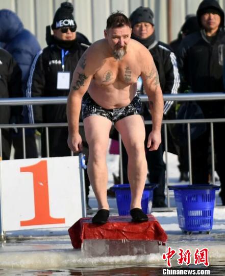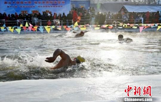 图为冬泳比赛瞬间。 艾耀宇 摄