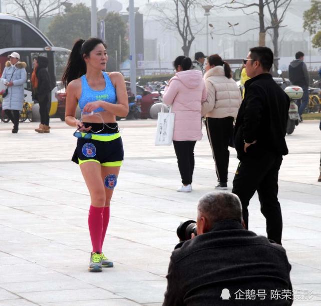 美女可以摆造型,就是影响后面跑步的先生了
