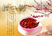 这一天有喝腊八粥的习俗,腊八粥又称"七宝五味粥"。我国喝腊八粥的的历史已有一千多年。最早开始于宋代。每逢腊八这一天,不论是朝廷、官府、寺院还是黎民百姓家都要做腊八粥。到了清朝,喝腊八粥的风俗更是盛行。在宫廷,皇帝、皇后、皇子等都要向文武大臣、侍从宫女赐腊八粥,并向各个寺院发放米、果等供僧侣食用。腊八粥熬好之后,要先敬神祭祖。之后要赠送亲友,一定要在中午之前送出去。最后才是全家人食用。吃剩的腊八粥,保存着吃了几天还有剩下来的,却是好兆头,取其"年年有余"的意义。如果把粥送给穷苦的人吃,那更是为自己积德。