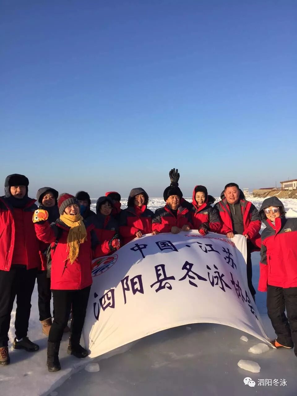 017年12月27日,苏北联盟理事会成员单位——泗阳县冬泳协会组队24人,奔赴祖国的大东北,参加2018年哈尔滨国际冬泳邀请赛,并成功挑战黑龙江漠河的中国最北冬泳。