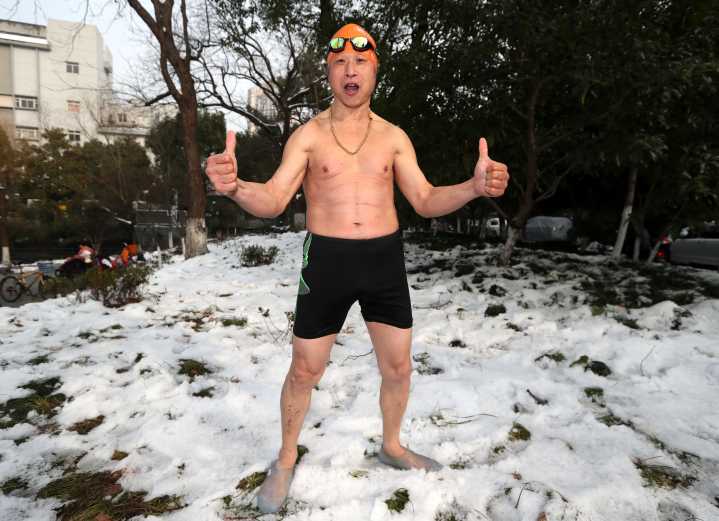 开年一场罕见大雪,把杭城带入了银光素裹的冰雪世界。可在杭州的艮山运河公园,你却能看见这么一副热火朝天的场景:一群六七十岁的冬泳爱好者,他们戴着泳帽,光着膀子,漂亮跃入水中,尽情畅游,赢得围观者掌声如雷。