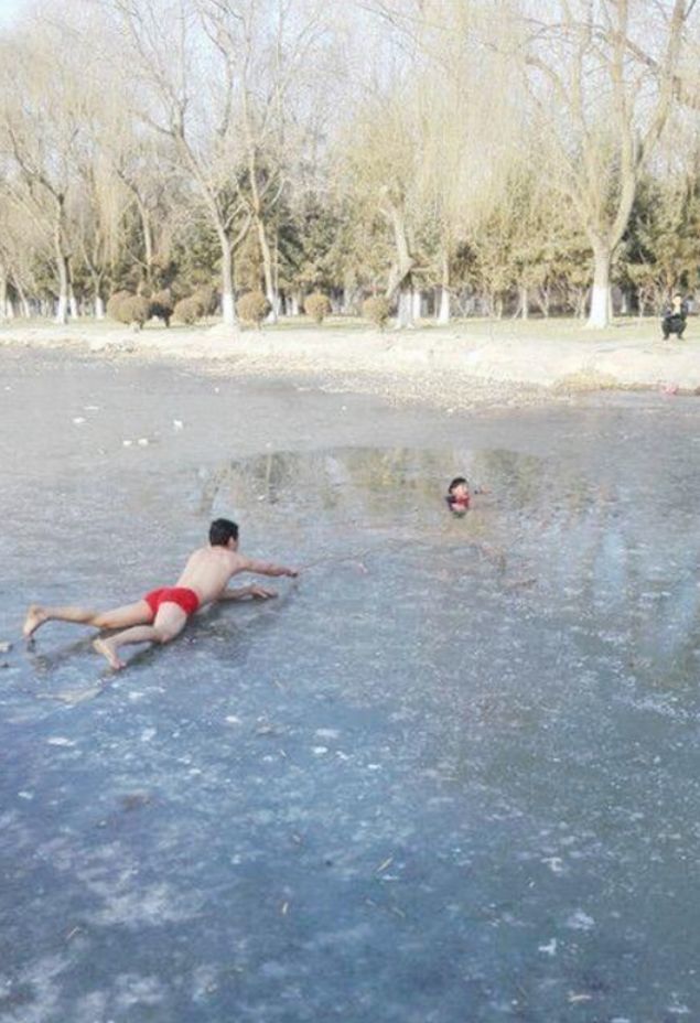 恰逢一个6岁男孩不慎坠入湖中冰窟,