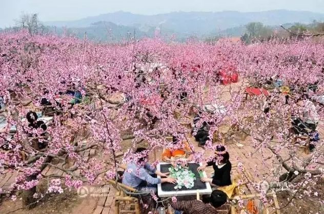 在桃花树下,来一场热闹的麻将