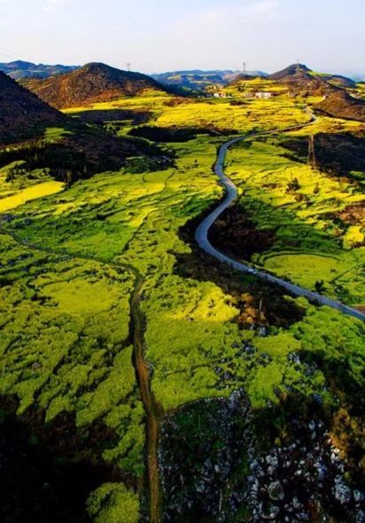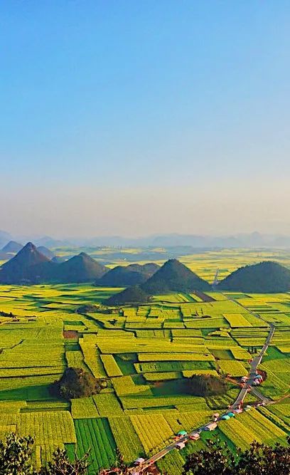 这里多是喀斯特地貌独有的峰林,试问油菜花田环绕桂林山水是何等奇美的景象?不用想象,二月的罗平便有这惊奇之美。