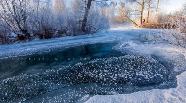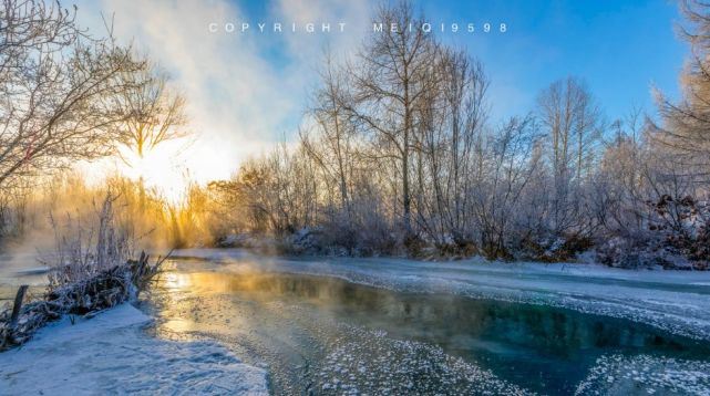 日出时分,水面的枯树、岸边的雾凇、喷薄的红日和蒸腾飘渺的雾气交融在一起,这样神奇魔幻的景象可谓是一饱眼福了。