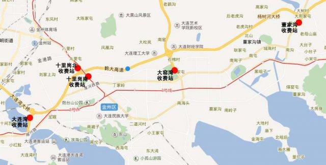 鹤大高速公路是指从与沈海高速公路交汇的立交桥(K1467.350公里处)开始,一直向东绵延至明阳匝道西(K1359公里处)止,全长108.35公里,主要由高速三大队管辖。沿线共有收费站12个,从东到西依次为:城子坦、皮口、皮口西、杨树房、杏树屯、登沙河、得胜、董家沟、大窑湾、十里岗北、十里岗南、大连湾。其中,大窑湾收费站归高速一大队管辖,皮口西收费站归高速六大队管辖,其余10个收费站由高速三大队管辖。董家沟收费站、大窑湾收费站、十里岗南收费站、十里岗北收费站、大连湾收费站,这5个收费站都在开发区或甘井子区域内,通过振兴路或振联路皆可进入市内。