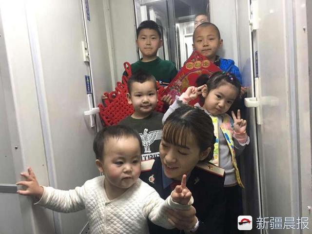 春运中,每趟列车都少不了孩子。近日,由乌鲁木齐铁路局库尔勒客运段杭州十五组当值的K596次列车,迎来了一群活泼可爱的春运宝宝。这趟列车由阿克苏开往杭州。