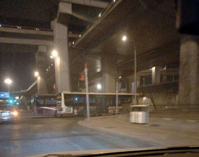 2月17日晚间,大连香炉礁立交桥下,两辆公交车剐蹭相撞,车损严重。幸运的是车上乘客不多,无人受伤。