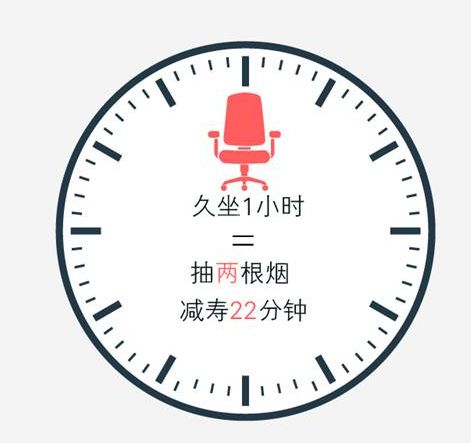 据台湾《康健》杂志报道,抽一根烟,会折损约11分钟的寿命。澳大利亚昆士兰大学研究发现,久坐1小时的危害约等于抽两根烟,也就是减寿22分钟。